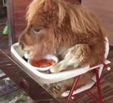 OMG, how cute: Tiny horse sitting in a high chair eating breakfast