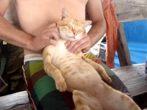 The yellow cat in this video knows how to work the patrons of the restaurant. He probably gets ten massages day, but this one is…