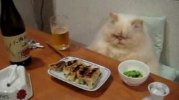 Oh how I would love to be propped up on pillows and served meals while I gave everyone stink-eye and licked my hands. He’s cute…