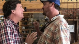 LOLz! Fox News host and right-wing pundit Tucker Carlson got a lot more than bait & tackle when he entered a fishing shop in Montana…