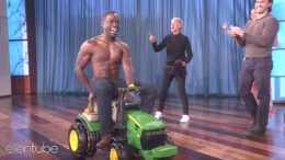OMG, WATCH: Ellen gets Emmy winner Sterling K. Brown to strip down on a tractor to appease her writhing audience