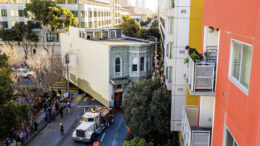 The Englander House in San Francisco, a 139-year-old home owned by a real estate guy, was picked up and placed on a flatbed trailer and…